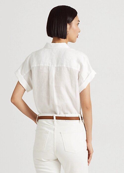 Chemises blanches à manches dolman en lin Ralph Lauren pour femmes