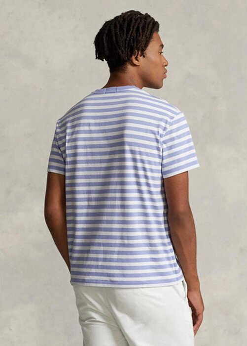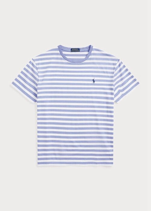 T-shirts bleus en jersey rayé Ralph Lauren Custom Slim Fit pour homme
